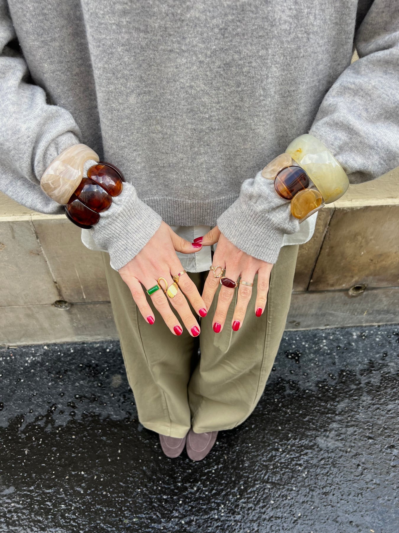 The Ilya bracelet in dark brown features a beautiful, deep marbled pattern that creates an exclusive and timeless look. The wide links give it a chunky feel, while the warm brown colour adds elegance and depth. A distinctive bracelet that elevates both simple and more festive outfits. 🤎