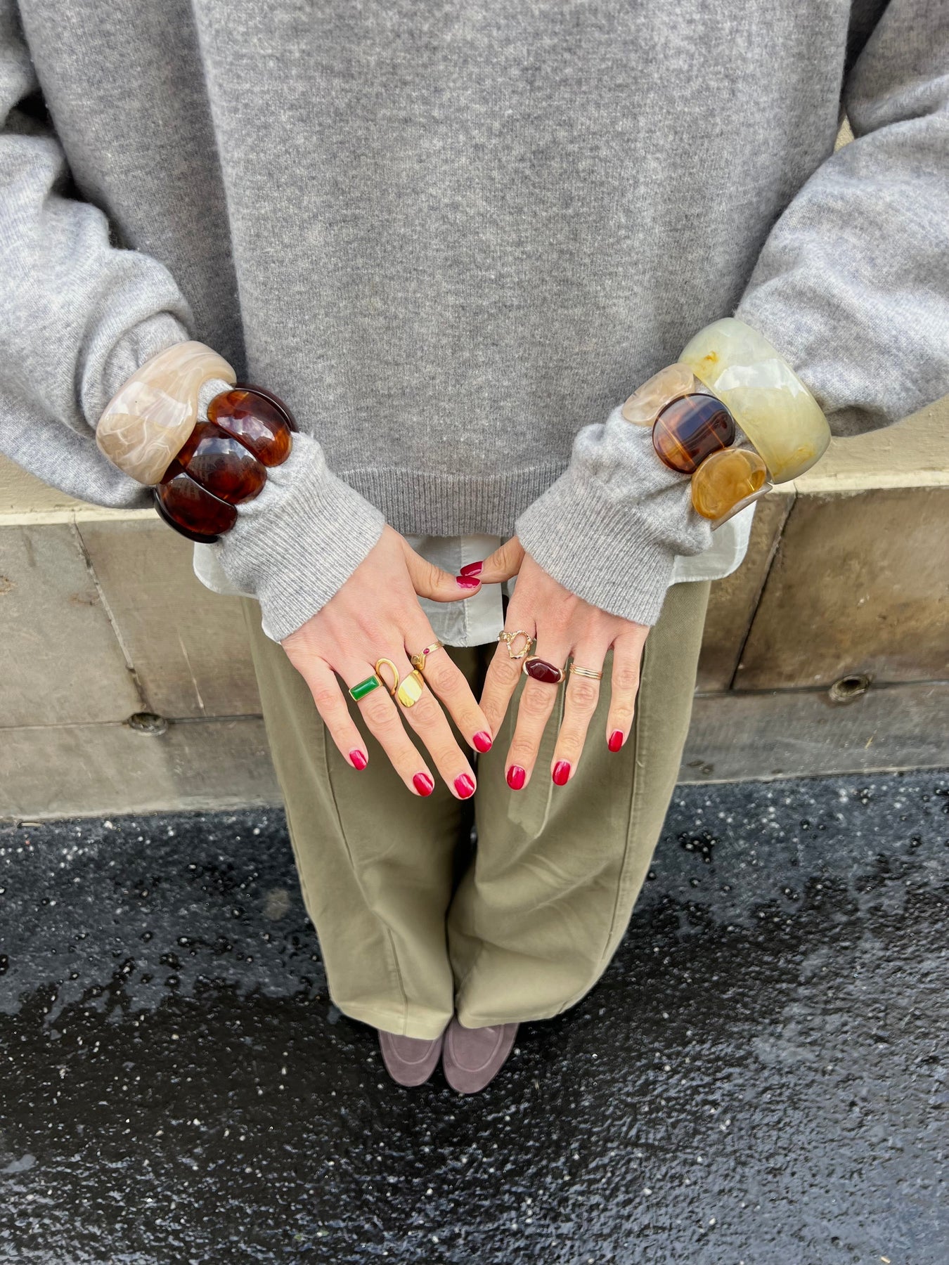 The Neo bracelet in beige is an organic open bracelet that gives an exclusive and timeless look. The bracelet is designed to be half open and therefore does not go all the way around the wrist, unlike most other bracelets - this makes the bracelet quite unique.