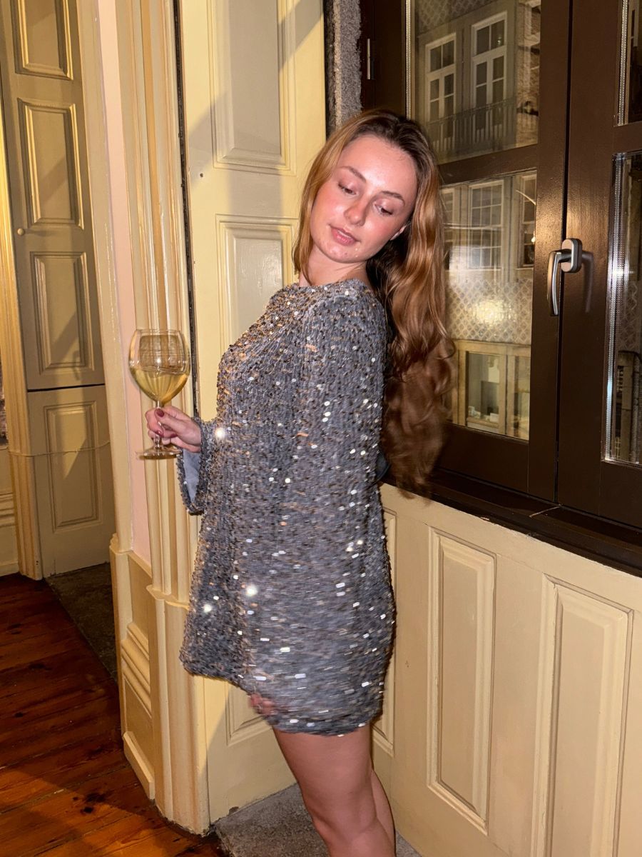 Our Aija bow dress in grey is filled with sparkling details that make it a sure hit for Christmas, New Year's Eve, and other festive occasions. The thigh-length dress has a beautiful black bow at the back, which adds an elegant and unique look. With its sparkling surface and fine details, it is perfect for creating a festive and colorful look that stands out🥂