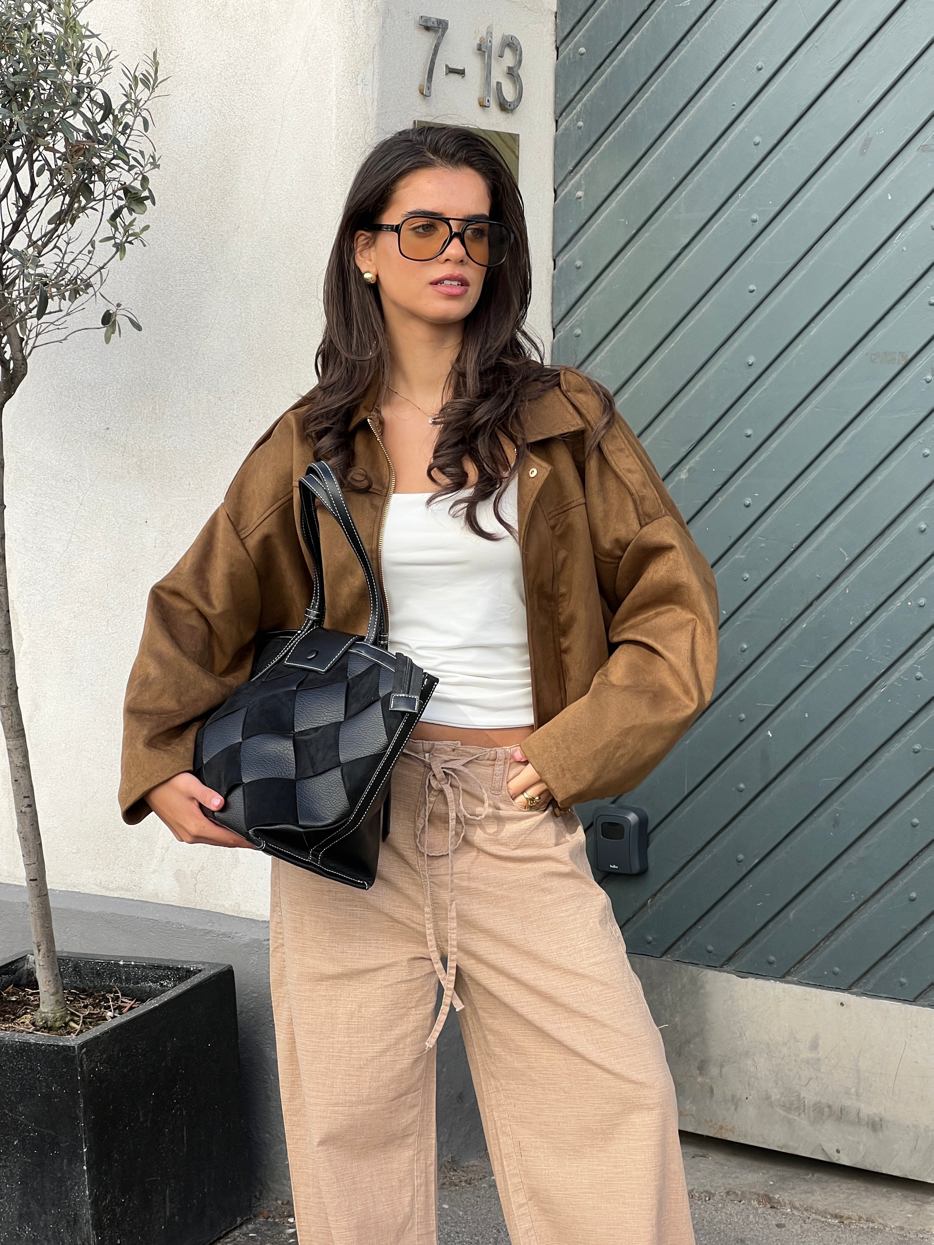 The Arlinda suede bomber jacket is the perfect addition to your wardrobe if you’re looking for a trendy suede bomber jacket. It comes in a beautiful dark green colour.