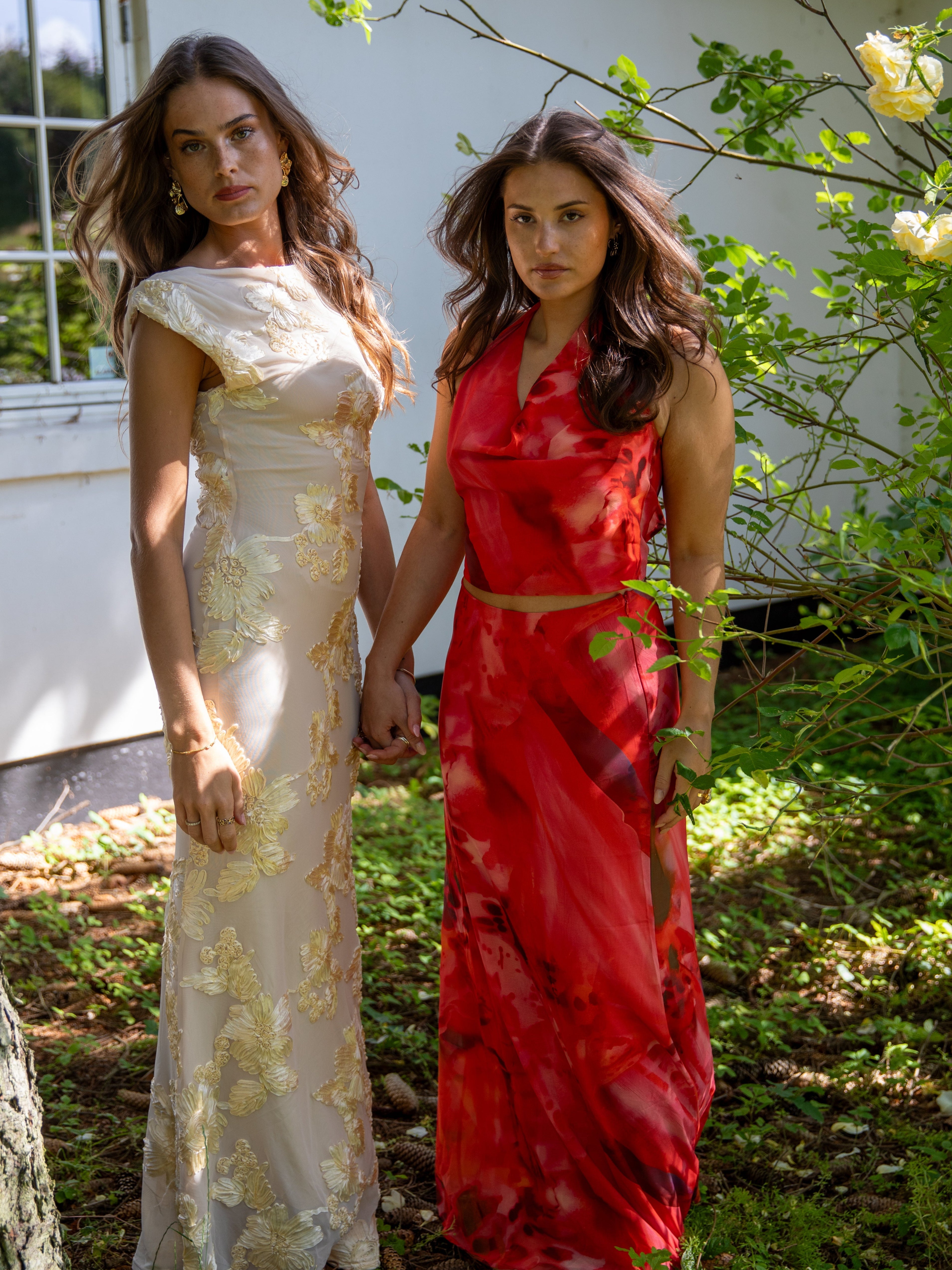 The Taliah maxi mesh skirt in red is a light and airy skirt with the finest print, giving it a feminine and summery look. It fastens at the side with a discreet zipper and falls beautifully around the body—the perfect skirt for hot summer days and special occasions where you want to feel both comfortable and stylish.