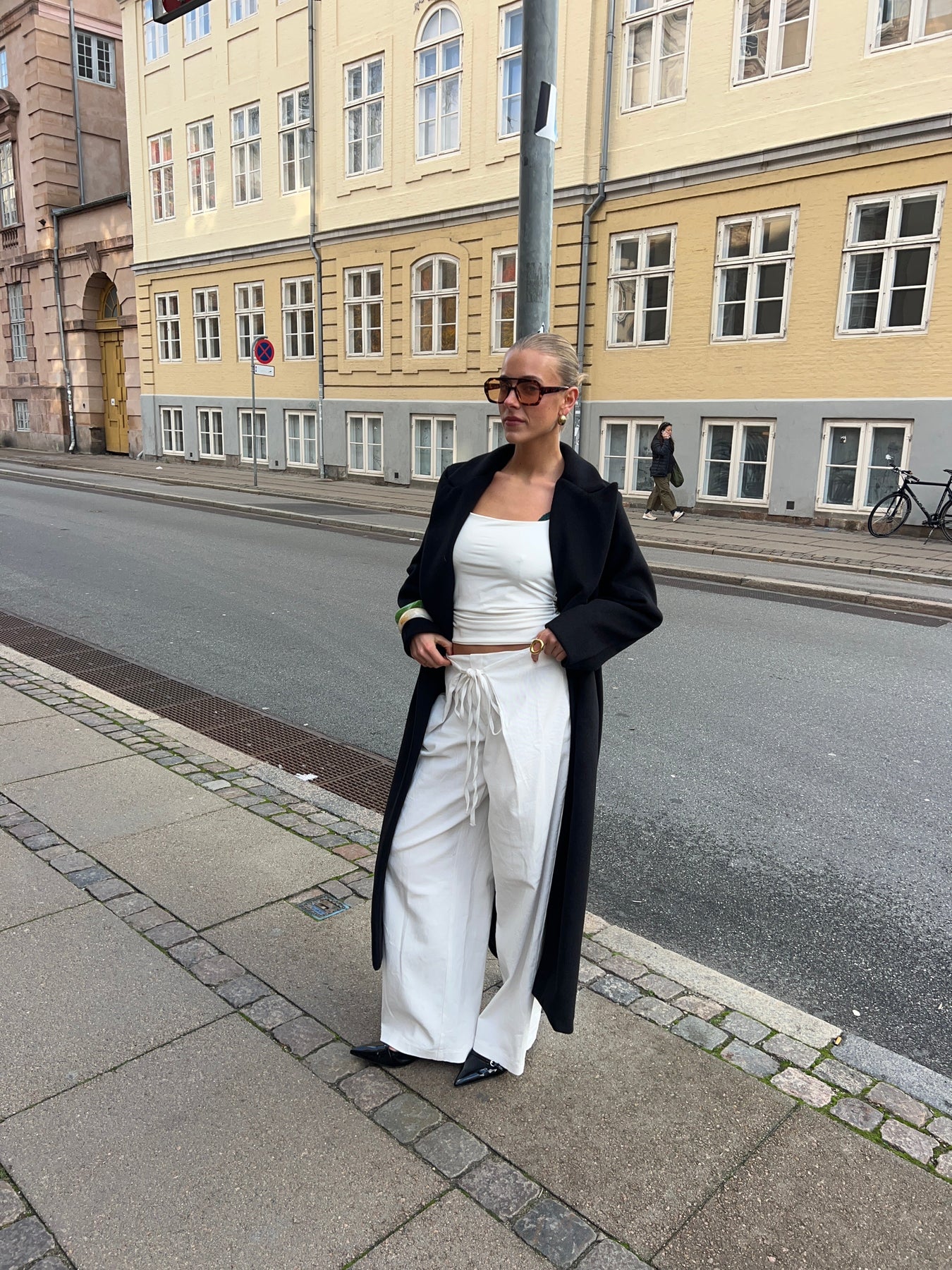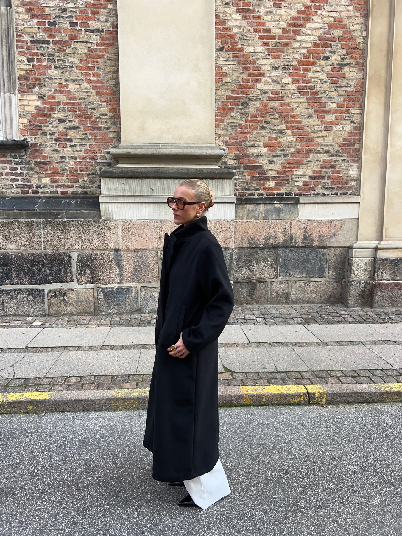 The Kelly coat is a timeless and elegant long coat, perfect for the transitional and autumn season. It has a deep V-neck and closes with beautiful brownish buttons, which gives a classic and stylish look. The sleeves also have nice button details, adding an extra touch to an otherwise simple and versatile jacket that can be styled over everything from jeans to dresses - ideal for those cooler days when you still want to maintain a sophisticated look.