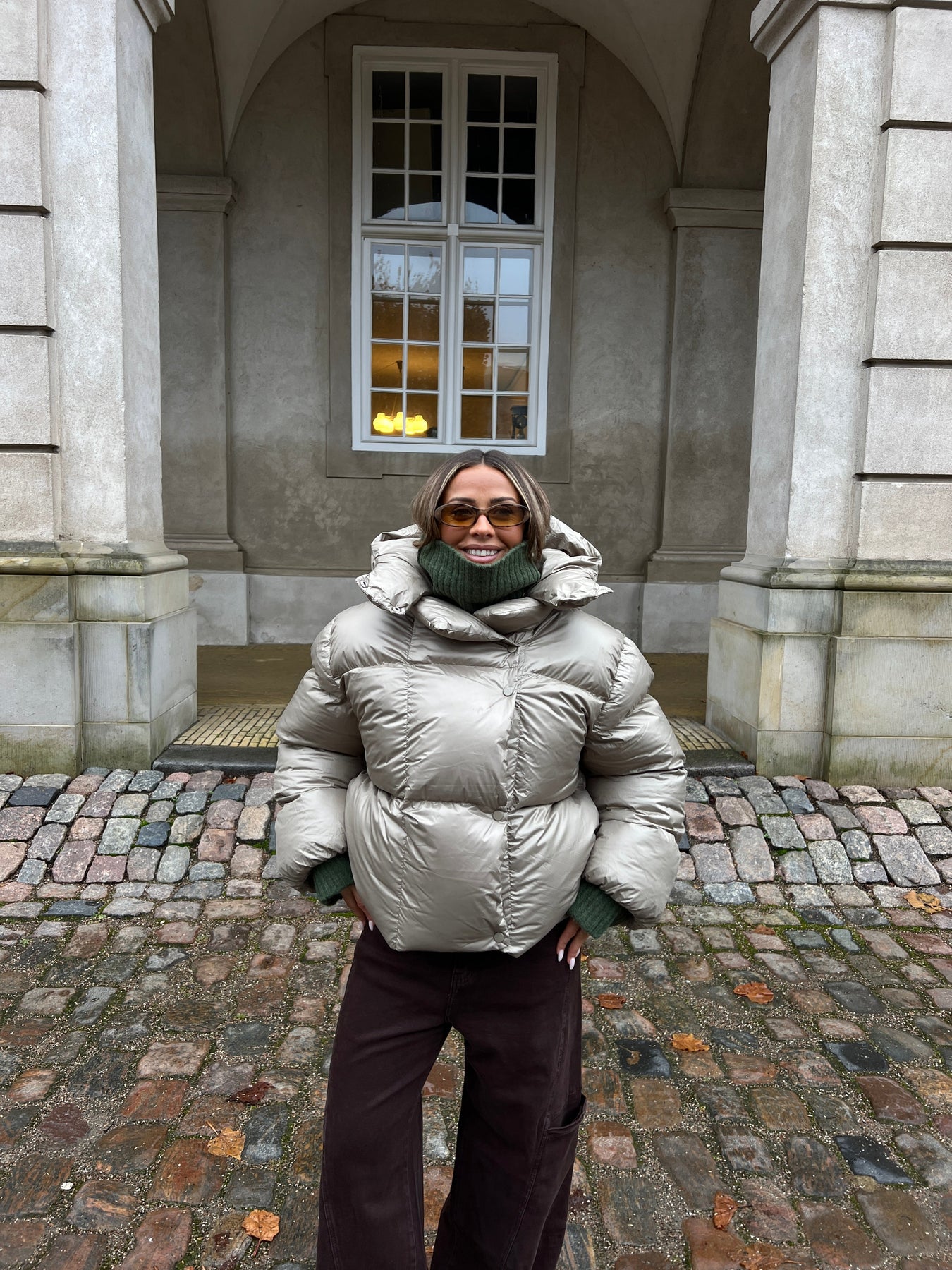 Our Ellinor puffer jacket is the perfect choice for the colder months when you want to stay warm without compromising on style. The jacket has a high neck and collar that protect against wind, weather, and cold, as well as a zipper closure and functional zipper pockets in the front. It has a classic, oversized fit and comes in three beautiful colors, so you can find the one that best suits your style.