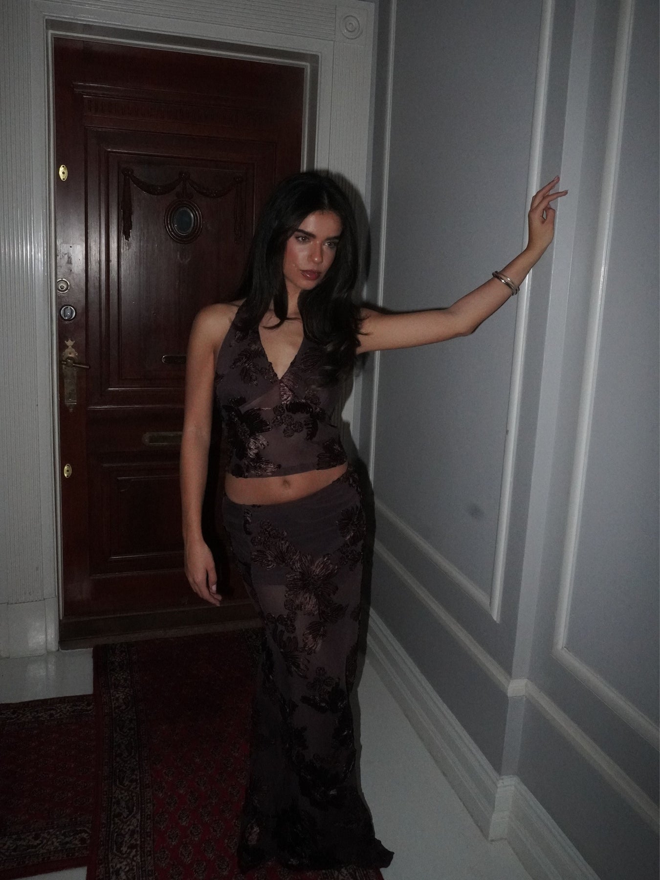 Our beautiful Kivo maxi skirt in mesh combines an elegant look with delicate handmade floral embroidery, giving the set a romantic touch. The skirt can be styled with our Kivo mesh top or other tops, making it easy to adapt to any occasion. The skirt has a waistband at the top that acts as an underskirt.