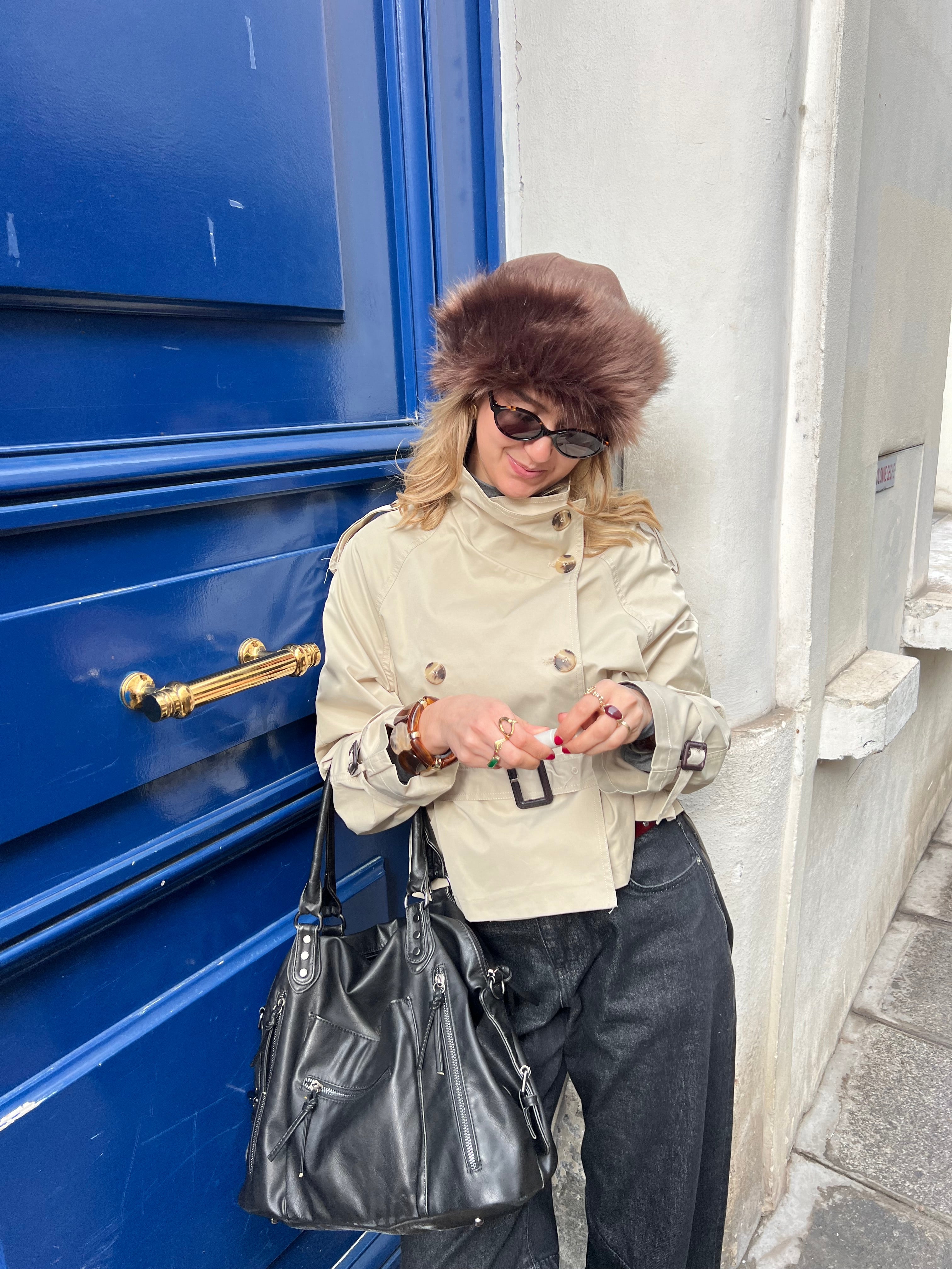 The Aria shearling hat is a stylish and distinctive accessory that combines a raw look with soft comfort. The soft shearling edge frames the face and gives the hat an exclusive and eye-catching look, while the smooth surface creates a beautiful contrast in the material.
