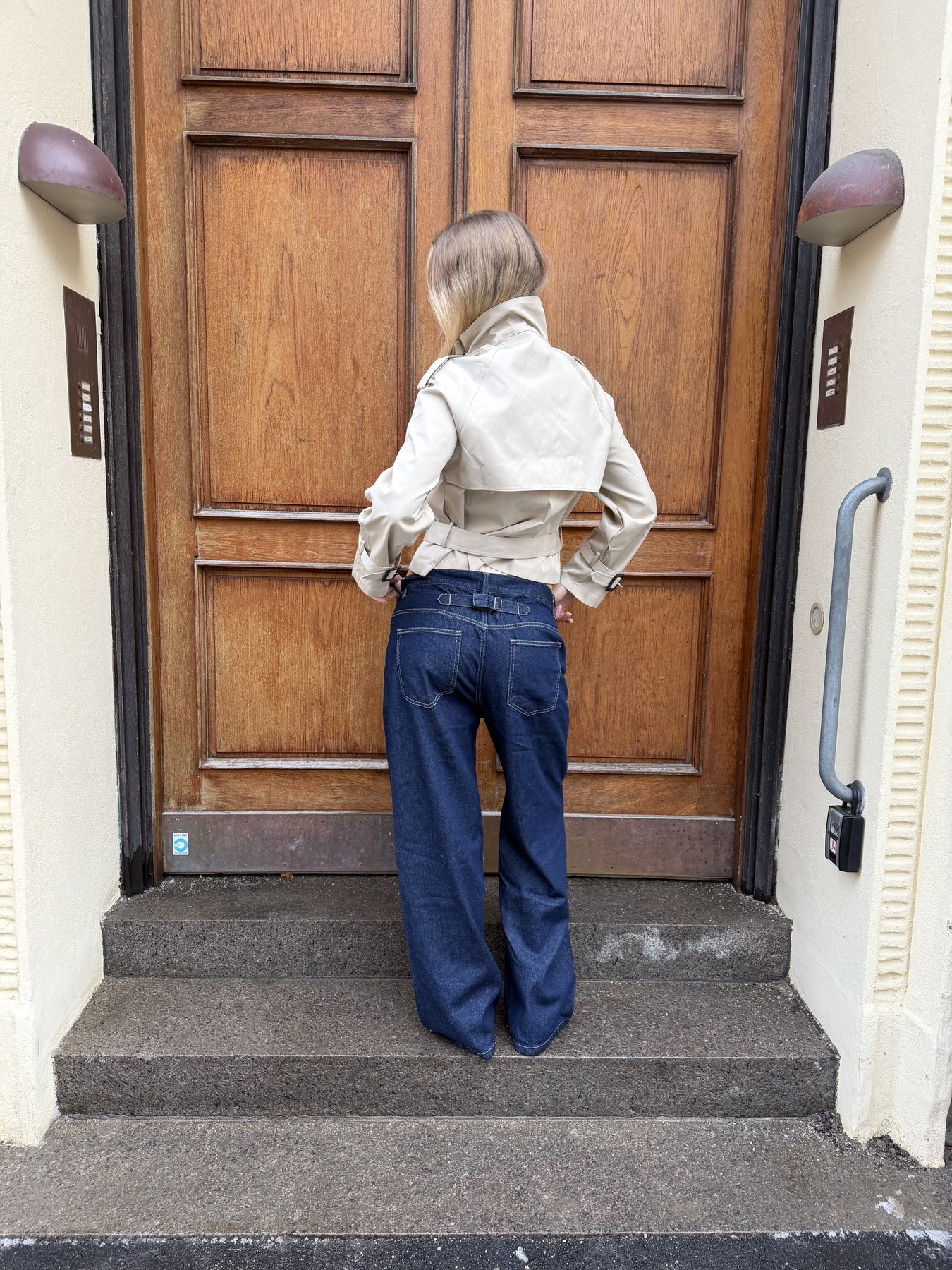 Our Zoey trenchcoat in beige is designed with a high collar and elegant brown buttons at the front, which are both practical and stylish. It has a waist tie with a buckle, so you can easily adjust the fit to your preference – whether you want it close-fitting or a little looser.