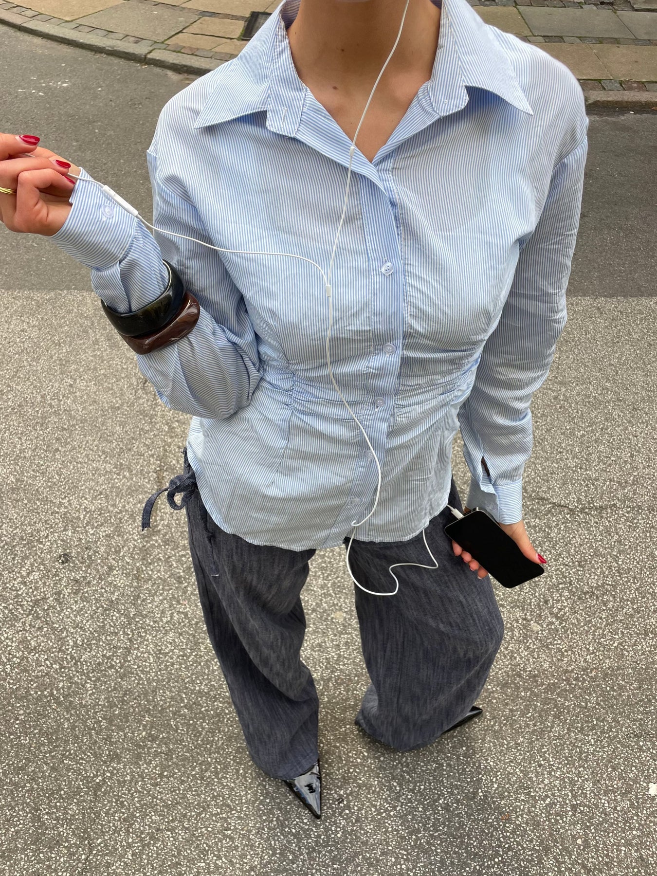 The Chloe shirt is made from a light and airy fabric with a subtle striped print that gives it a fresh and timeless look. It has a smock detail at the waist for a flattering fit and buttons all the way down the front. The collar at the neck and the tailored cuffs on the sleeves ensure that the shirt fits well and has a more stylish finish. Perfect for both everyday wear and more formal occasions.