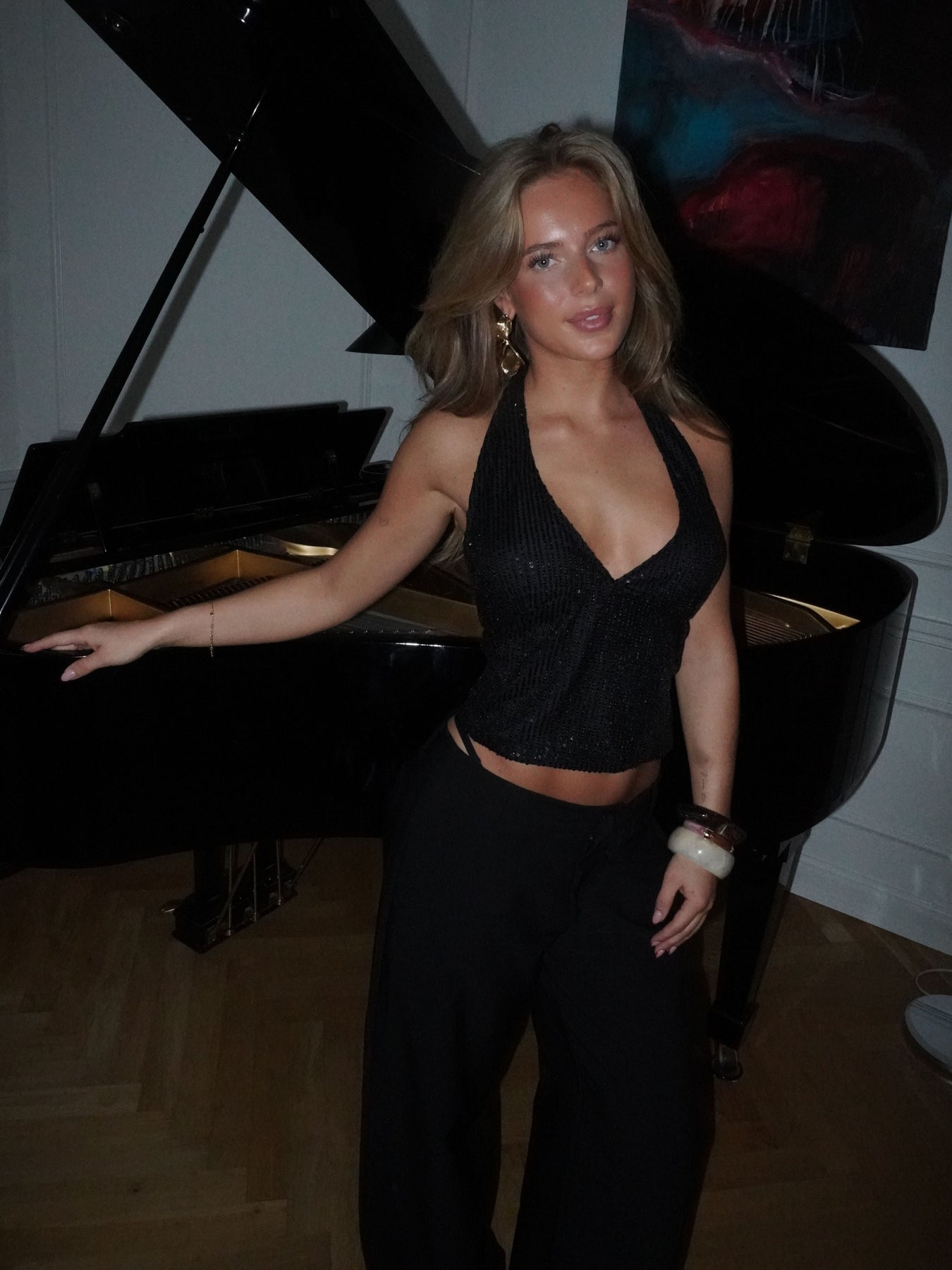Our beautiful Lola glitter tie-back top combines an elegant look with lots of glitter for a festive touch. The top can be styled with a pretty skirt or a pair of jeans/trousers, making it easy to adapt to any occasion. The top ties at the back and creates a flattering fitted waist.