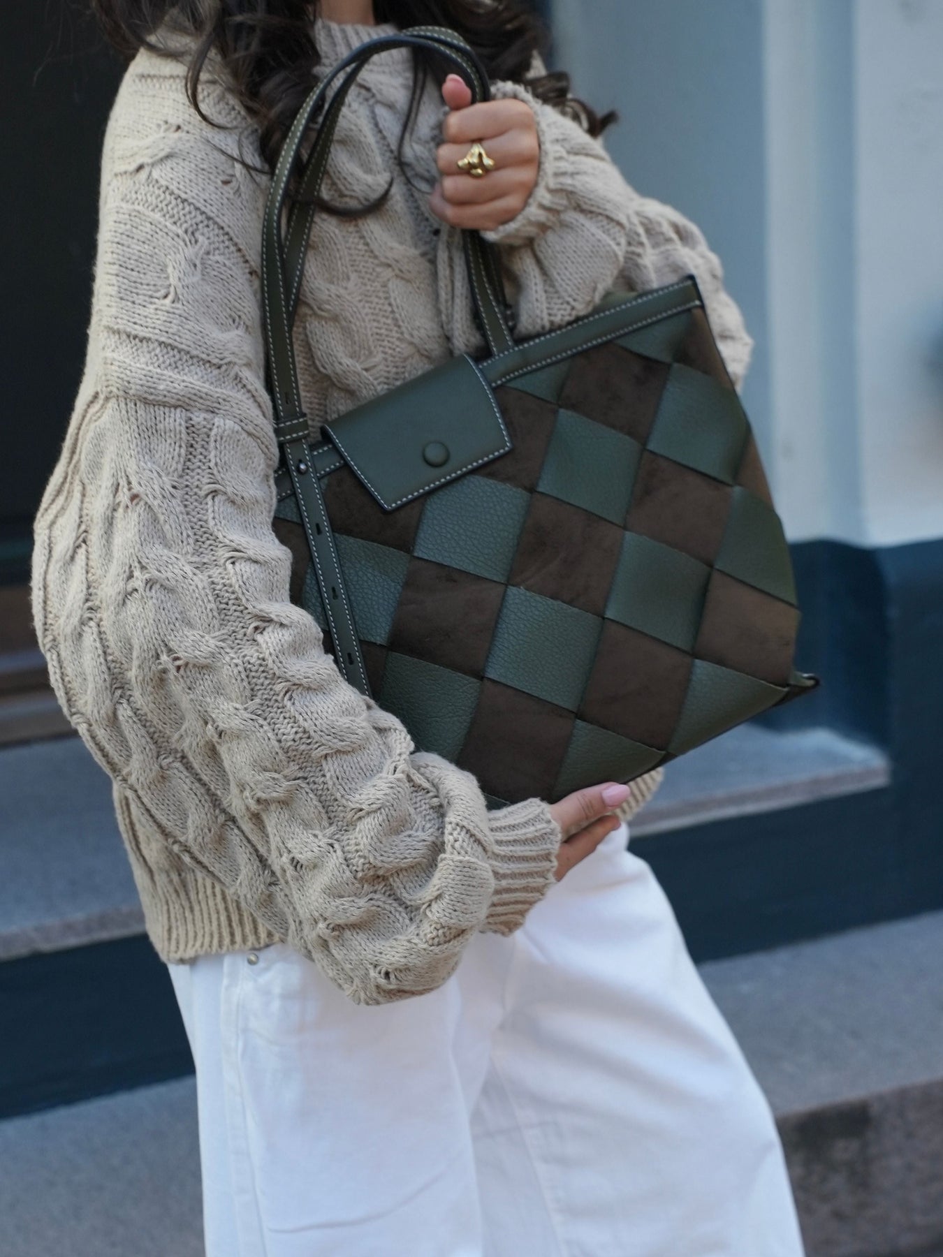 Our Tilia braided shoulder bag is a stylish and practical bag that combines suede and vegan leather in a beautiful braided design. It has both a button and a zipper closure, so your things are secure, and the long handles make it comfortable to carry over the shoulder. An elegant everyday bag with plenty of space, available in three beautiful colours - perfect for both work and leisure.